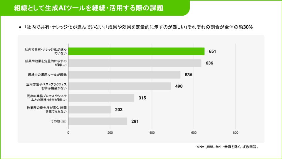 - AI活用のガイドライン策定やリスク管理が、現場の足かせになっている